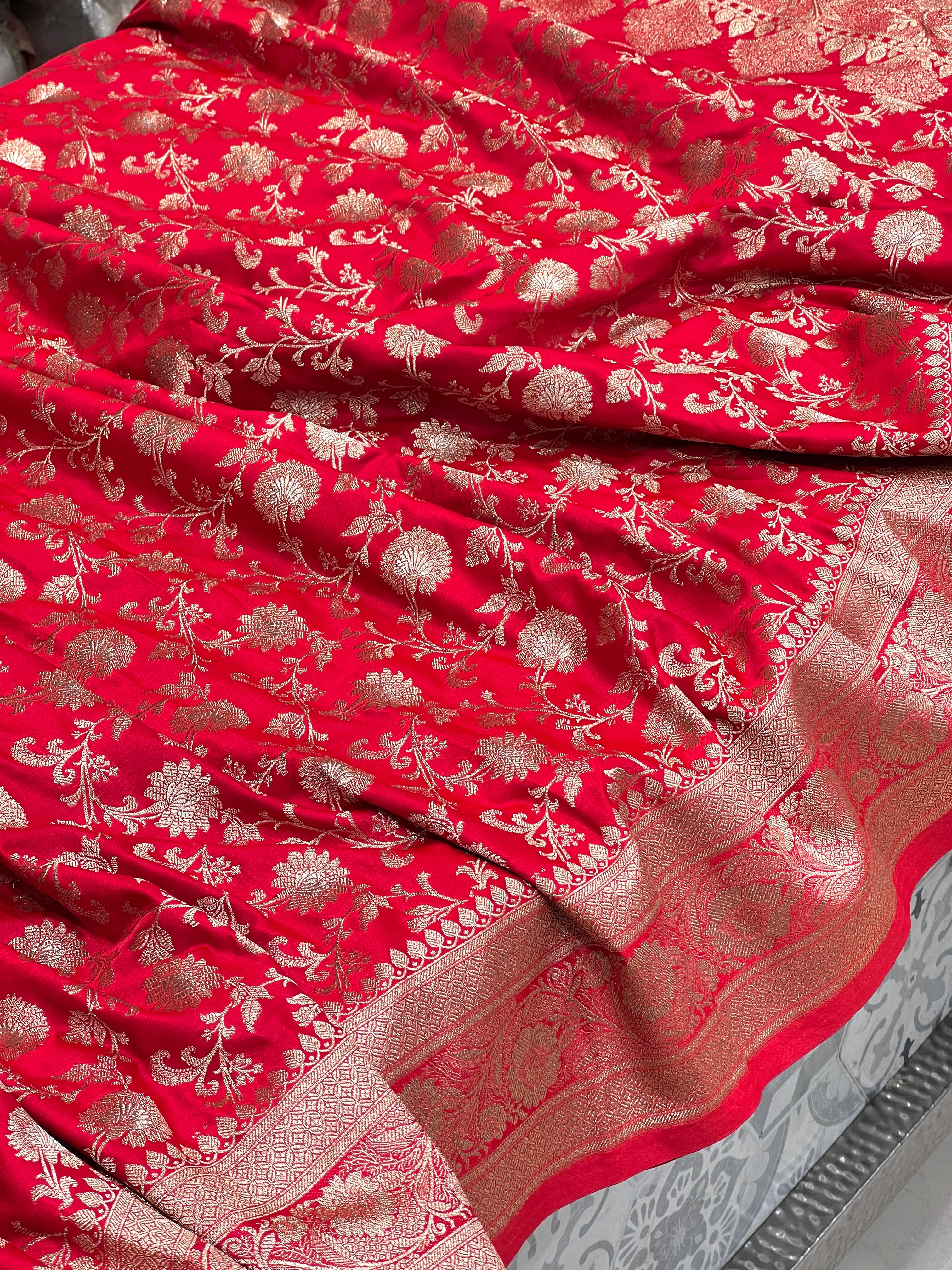 Red Banarasi Japanese Butti Zardosi Hand Embroidery Saree