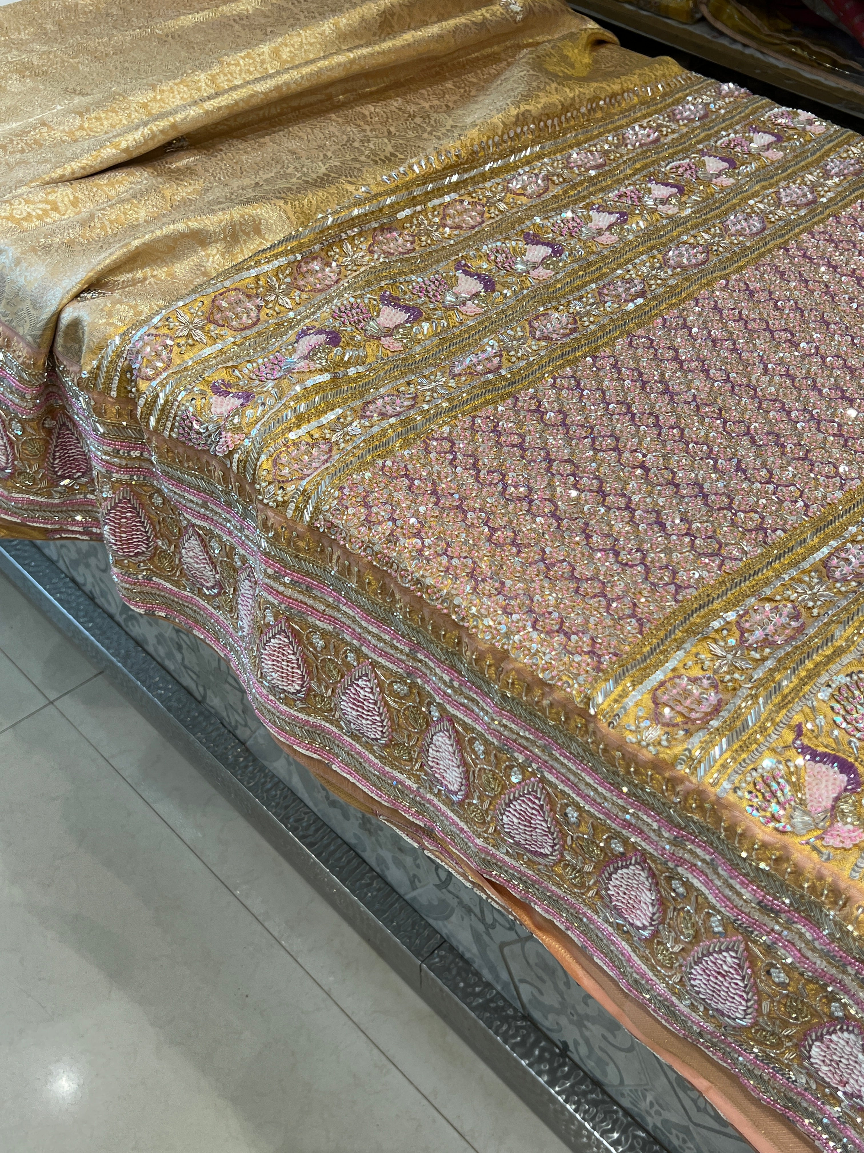 Tissue Maharani Style Gota Zardosi Hand Embroidery Butta Saree