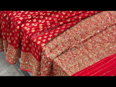 Red Banarasi Khaddi Georgette Hand Done Buttis Sale priceRs. 14,500.00