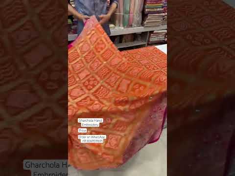 Orange x Rani Gharchola. A vibrant woven bandhej gharchola is hand embroidered with stones and cutdanas. It's a perfect traditional saree for any occasion. Be it your haldi or any day time function, it's a must have this season. Fall in love with the beautiful drape of this vibrant saree.